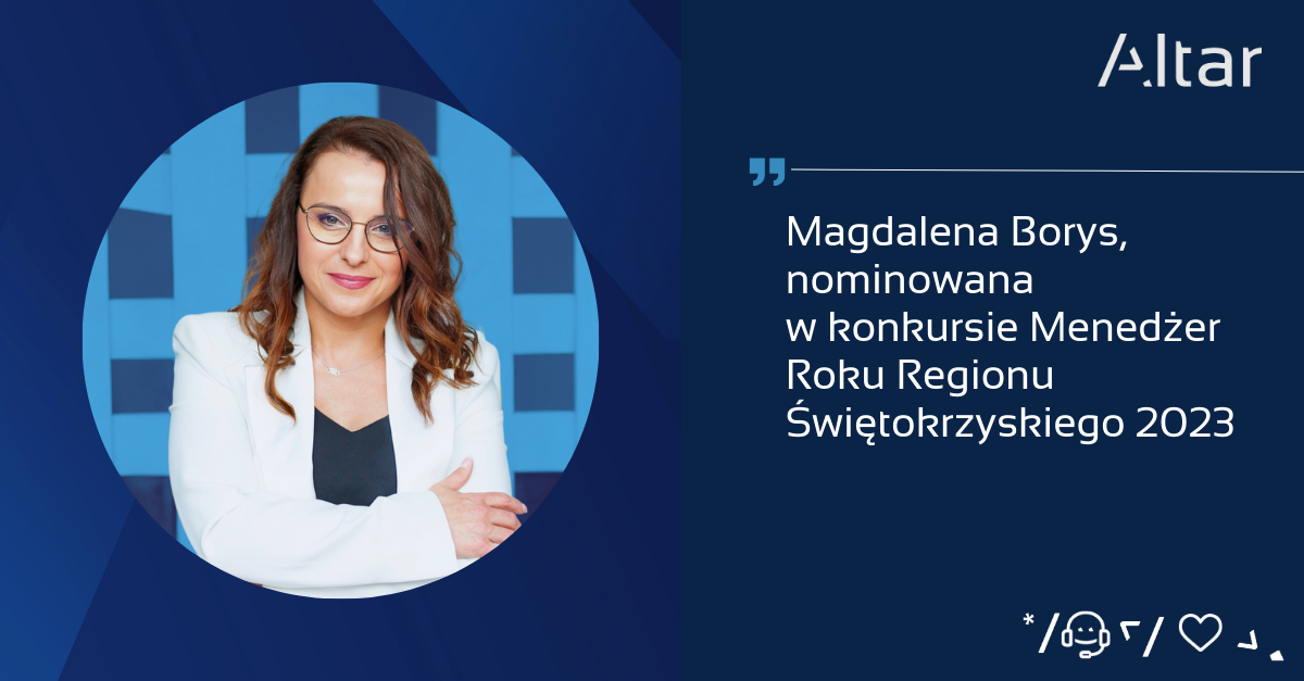 Magdalena Borys, Prezes Altar, jest nominowana w konkursie Menedżer Roku Regionu Świętokrzyskiego 2023, w kategorii […]