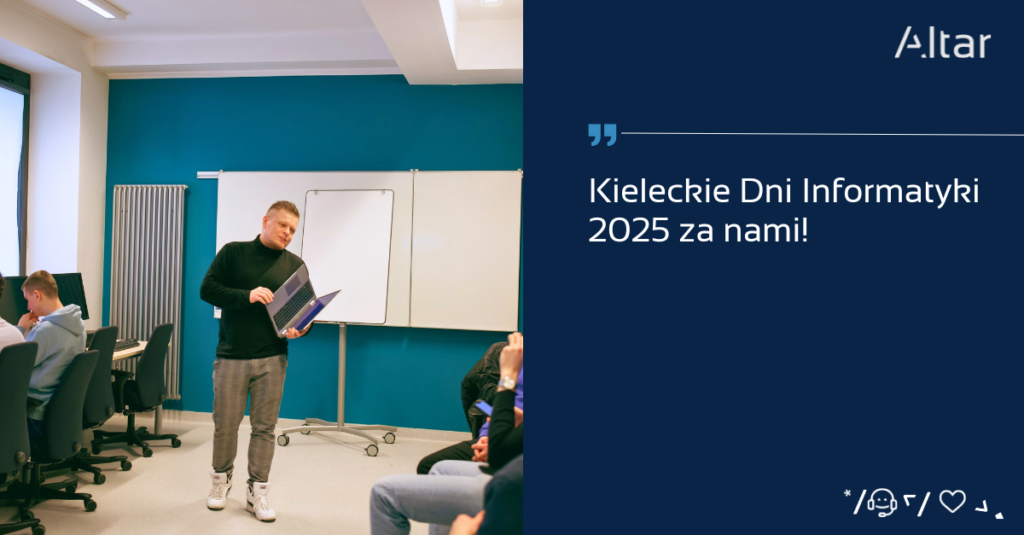 Za nami Kieleckie Dni Informatyki – największe wydarzenie IT w regionie, które odbyło się dzięki współpracy Kieleckiego Parku Technologicznego, Politechniki Świętokrzyskiej oraz licznych partnerów, w tym firmy Altar jako Partnera Merytorycznego.