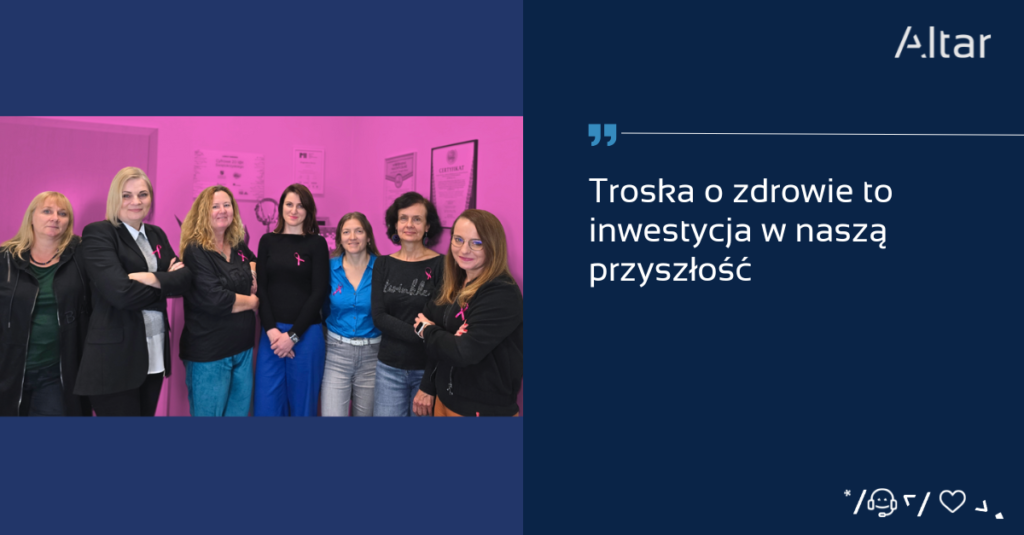 Październik to miesiąc świadomości raka piersi. W Altar mamy ogromne szczęście pracować z wieloma wspaniałymi kobietami, które każdego dnia przyczyniają się do rozwoju naszych technologii i innowacyjnych rozwiązań. Na czele naszej firmy stoi Magdalena Borys, liderka w branży IT, która pokazuje, że w świecie technologii nie ma barier dla kobiet.