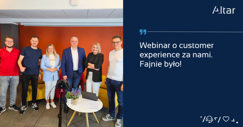 Webinar „Customer Experience – Zabezpiecz Przyszłość Swojego Biznesu” – za nami. Dziękujemy wszystkim uczestnikom, organizatorom, a przede wszystkim wspaniałym ekspertkom – Iwonie Michałek (Key Account Manager w Altar), Mirosławie Szewczyk (Head of Customer Relations w Balcia Insurance SE) – oraz ekspertowi – Pawłowi Sadowskiemu (Business Development Director w Altar) – za profesjonalną dawkę skondensowanej wiedzy!