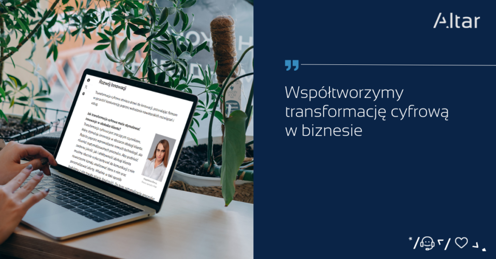 Jak transformacja cyfrowa może stymulować innowacje w obsłudze klienta? Jakie nowatorskie rozwiązania cyfrowe mogą pomóc firmom wyróżnić się na rynku? Między innymi na te pytania odpowiedziała Magdalena Borys, Prezes zarządu Altar, w obszernym artykule CC News na temat wyzwań i możliwości transformacji cyfrowej w obsłudze klienta.